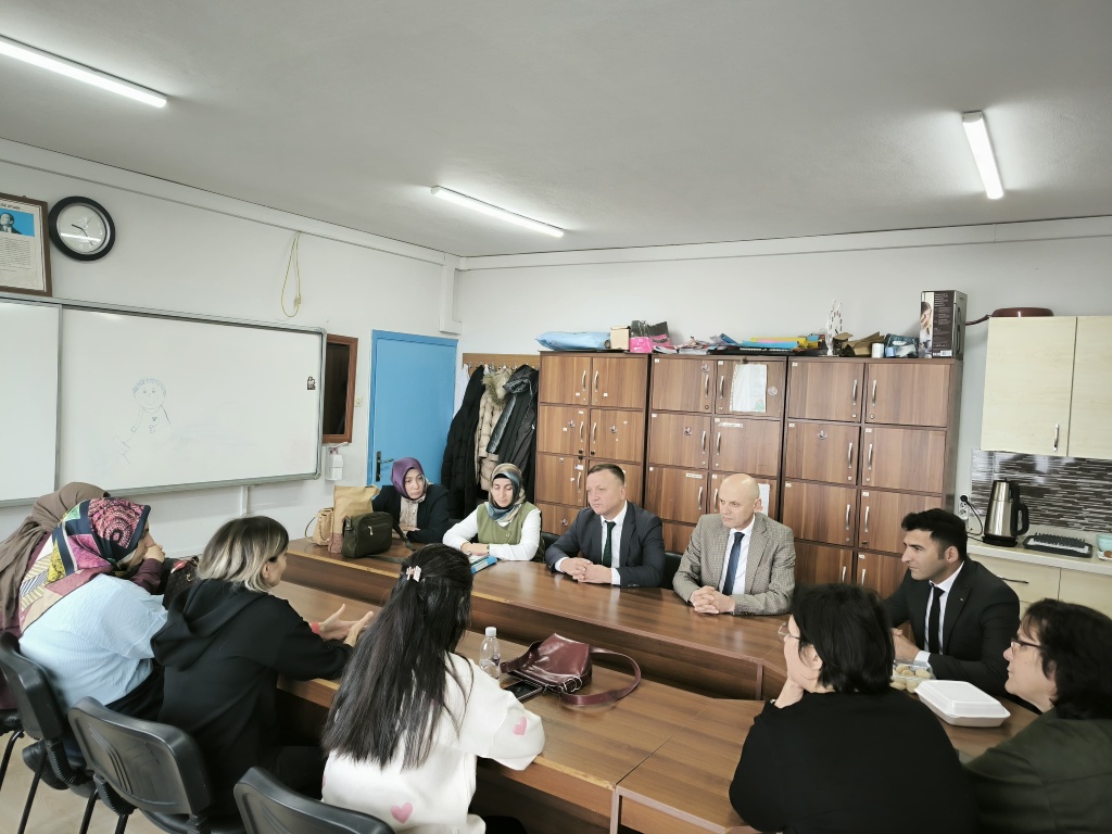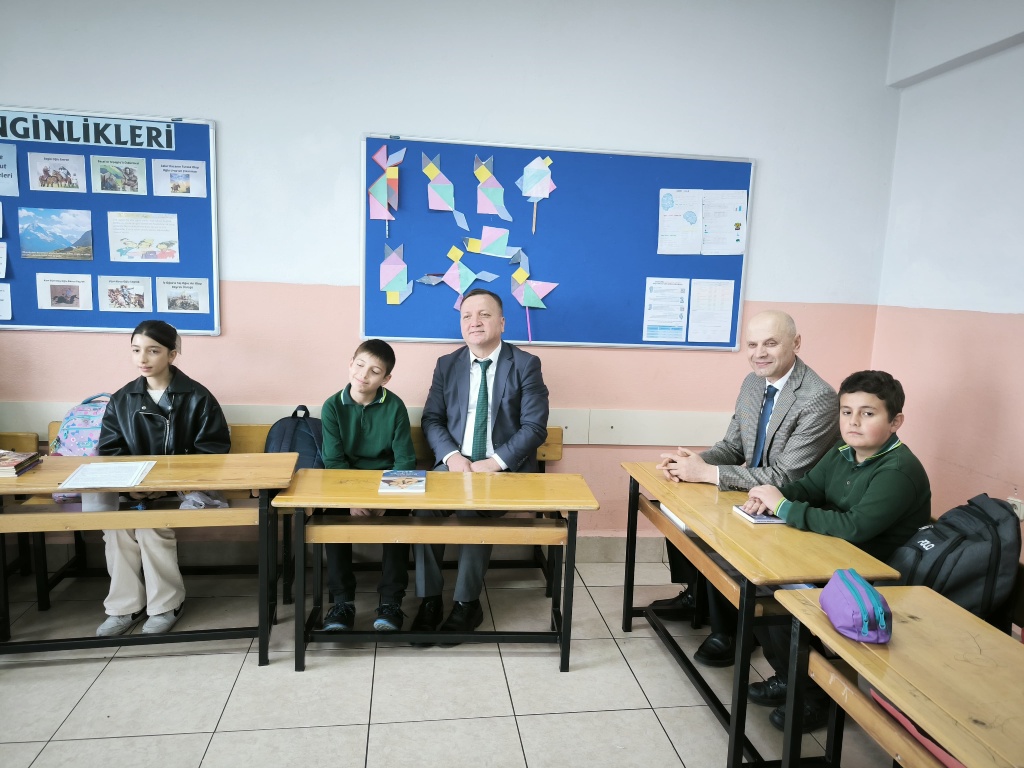 İlçe Milli Eğitim müdürümüz Mehmet Usta 28 Nisan 2025 Pazartesi günün okulumuzu ziyaret etti. Milli Eğitim Müdrümüz Mehmet Usta ilk olarak sabah 8.30'da düzenlenen "Bayrak Töreniéne katıldı. Öğrencilerle birlikte söylenen İstiklal Marşı eşliğinde şanlı bayrağımız göndere çekildi. Öğretmenler odasınada öğretmenlerle bir süre sohbet eden Milli Eğitim Müdürü Usta ardından Türkçe Öğretmeni naslihan BAHADIR'ın 5. sınıftaki "Dilimizin Zenginlikleri Projesi" kapsamında Dede Korkut temalı derse katıldı. Ana sınıfımızı da ziyaret eden MEM Mehmet Usta öğrencilerle birlikte şarkı söyledi. İlkokul öğrencileriyle okul bahçesinde geleneksel çocuk oyunlarına katıldı. Toplu fotoğraf çekiminden sonra ziyaret tamamlandı.